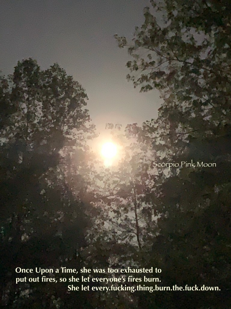 Once upon a time she was too exhausted to put out everyone else's fires. So she let their fires burn. She let every. fucking. thing. burn. the. fuck. down.
